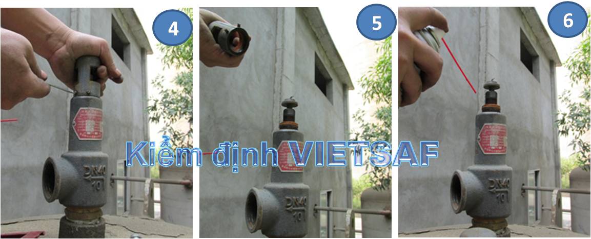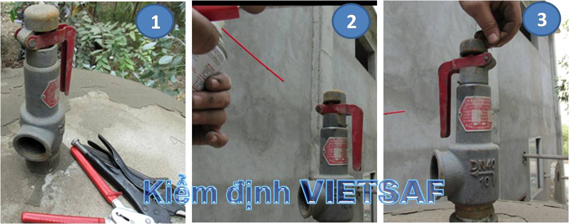 Một số hình ảnh về kiểm định van an toàn thông qua việc căn chỉnh trực tiếp khi van đang hoạt động cùng thiết bị.